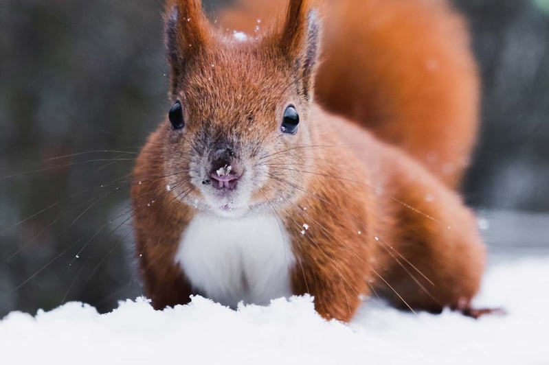 So oder so ähnlich sehen Eichhörnchen-Beobachtungen im Winter aus – zumindest in den Schlafpausen, wenn der Hunger die kleinen Nager bei nicht zu kaltem Wetter aus ihrem warmen Kobel treibt. Wer liebt sie nicht, die putzigen Gesellen mit den Pinselohren und dem langen buschigen Schwanz? Zweifellos dürfte es eine der beliebtesten Tierarten in unseren Gärten und Parks sein.