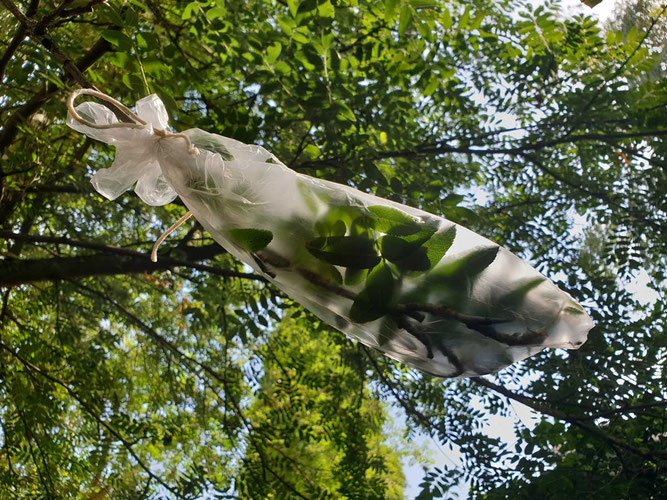Wichtig ist natürlich, dass ihr das Beutelchen zum Schluss eurer Naturaktion vorsichtig wieder abnehmt und dabei keine Blätter verletzt. Ihr könnt den Beutel wieder mit nach Hause nehmen oder vielleicht testet ihr jedes Mal andere Bäume, wenn ihr draußen seid.