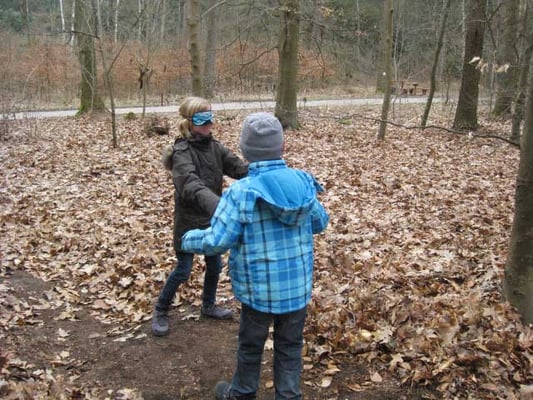 Ihr könnt ja auch ein Geräusch vereinbaren, falls jemand vom Weg abkommt. Dann kann Derjenige/Diejenige anhalten und versuchen, auch mit geschlossenen Augen, den richtigen Weg zu finden.