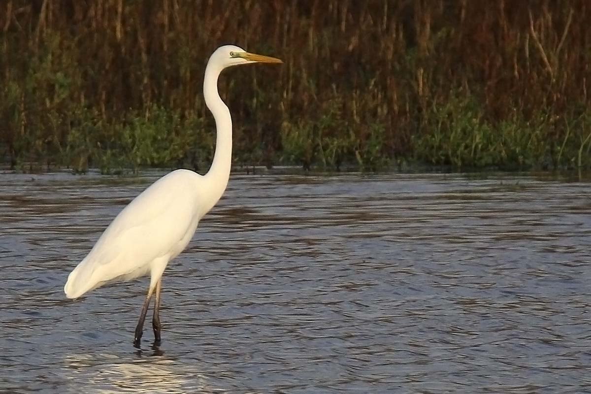 Der Silberreiher fällt schon von Weitem durch seine Gestalt und sein strahlend weißes Gefieder auf.