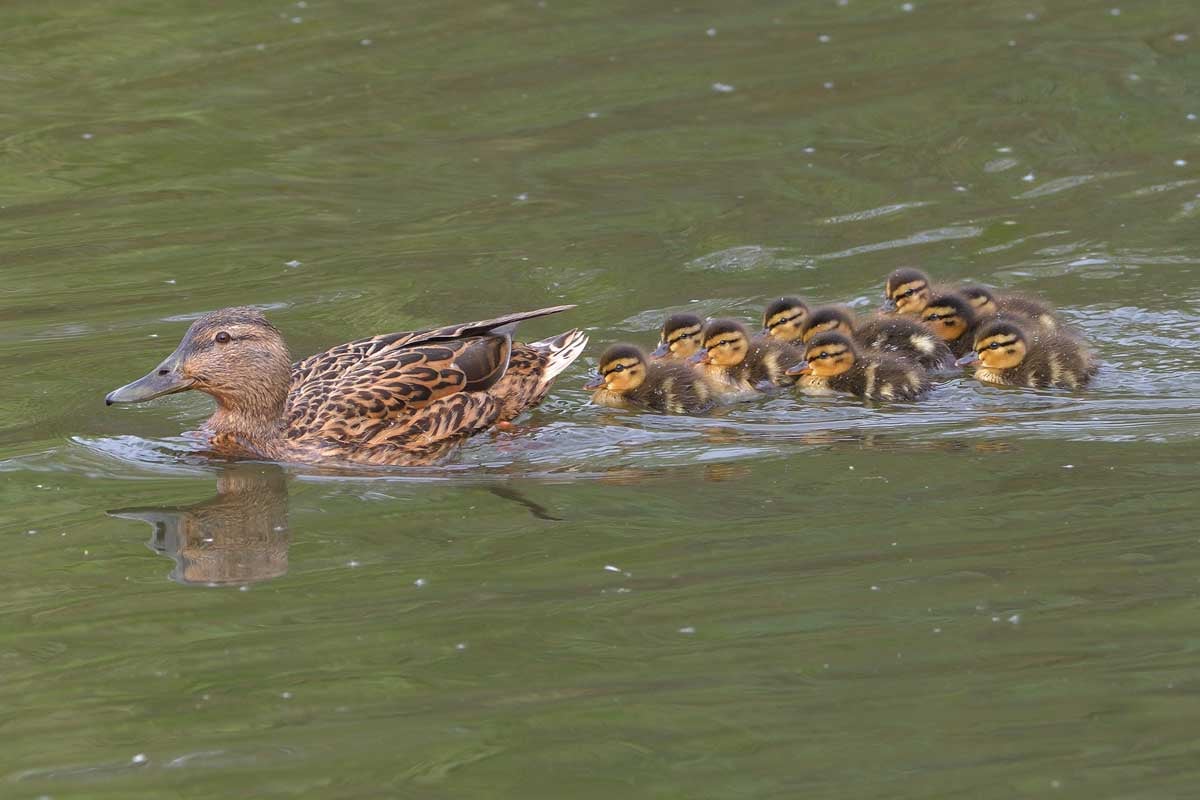 Die allseits bekannte und vielerorts recht häufige Stockente ist die Stammform aller Hausentenrassen. Sie ist auf dem nördlichen Teil unserer Erde die am weitesten verbreitete und zahlenmäßig mit Abstand die häufigste Entenart; auch auf den Gewässern unserer Stadt.